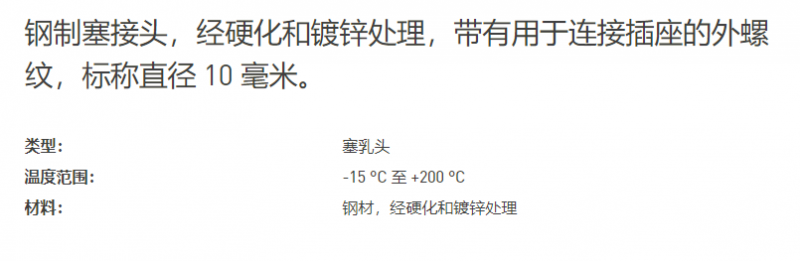 MADER 钢制塞接头标称直径 10 毫米系列